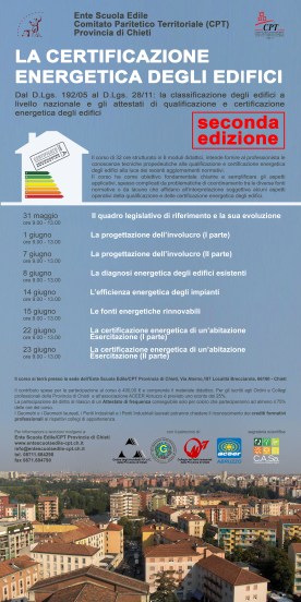 Il corso di 32 ore strutturato in 8 moduli didattici, intende fornire al professionista le conoscenze tecniche propedeutiche alla qualificazione e certificazione energetica degli edifici alla luce dei recenti aggiornamenti normativi. Il corso ha come obiettivo fondamentale chiarire e semplificare gli aspetti applicativi, spesso complicati da problematiche di coordinamento tra le diverse fonti normative o da lacune che affidano all’interpretazione soggettiva alcuni aspetti operativi della qualificazione e delle certificazione energetica degli edifici.