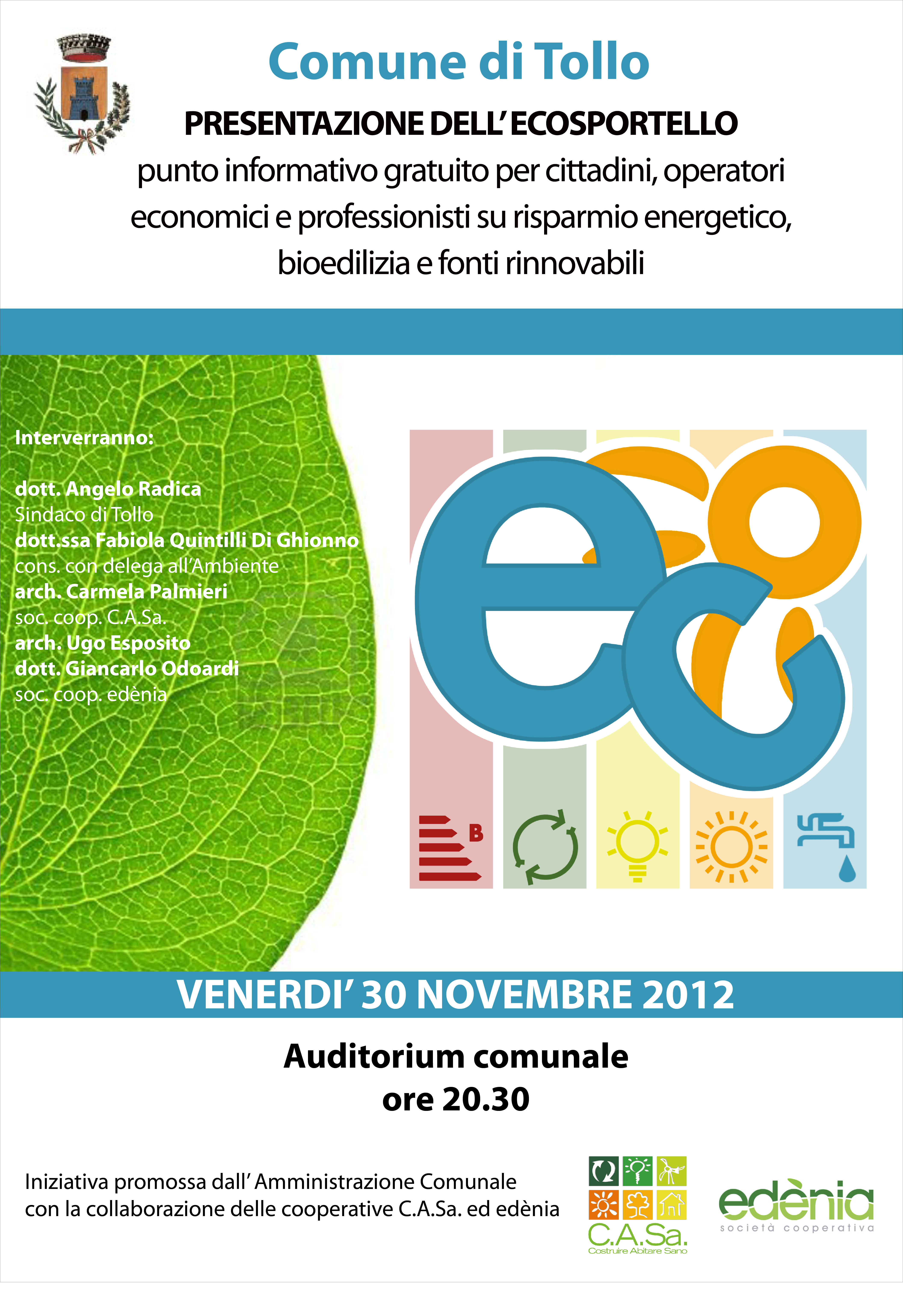 E’ il titolo di un seminario che si terrà giovedì 31 marzo, alle ore 16,00, nella Sala consiliare del Comune di Guardiagrele. L’iniziativa è promossa dal Consorzio di solidarietà Con.Sol. e da Saima, Società Cooperativa Sociale, in collaborazione con le società C.A.Sa, Costruire abitare sano e Edènia – Punto Energia. L’iniziativa è stata inoltre patrocinata dalla Confcooperative Abruzzo, dall’Ordine degli Architetti della Provincia di Chieti, dalla Comunità Montana della Maielletta e dal Comune di Guardiagrele.